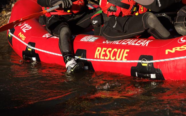 La maniobra se inicia con cinco componentes del equipo del GRA montados en una barca ligera raft. Maniobran contracorriente, impulsados por los remos, remontando el río para acercarse a la pasarela e inspeccionar la acumulación de restos arrastrados por el caudal. Aprovechan las zonas en las que el choque de la corriente con los obstáculos -los pilares de la estructura de hormigón en este caso- hacen que esta cambie de sentido para avanzar con facilidad río arriba. Si un cuerpo o un objeto cae en esa zona de contra, es posible que se quede en ella y no siga río abajo.