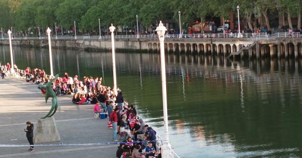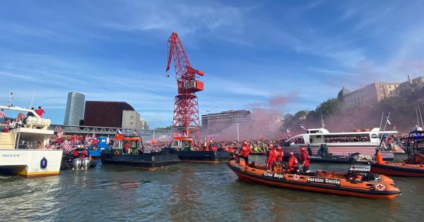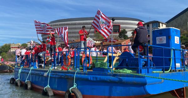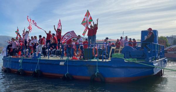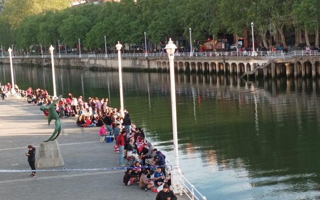 Ya a primeras horas de la mañana, cientos de aficionados del Athletic Club han comenzado a coger uno de esos valiosos sitios para poder ver de cerca el paso de la Gabarra por Bilbao.