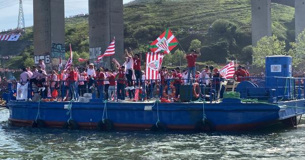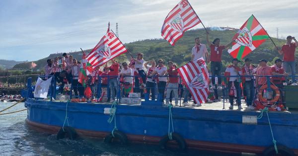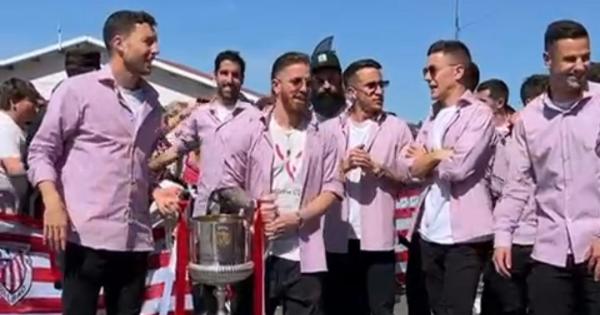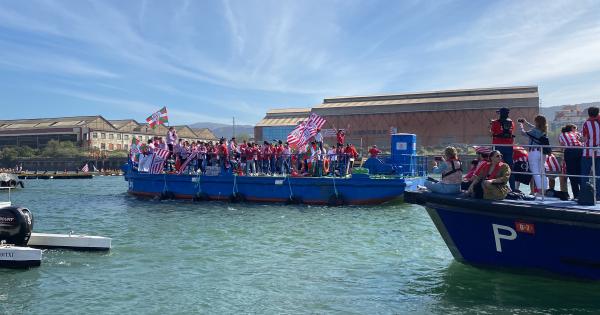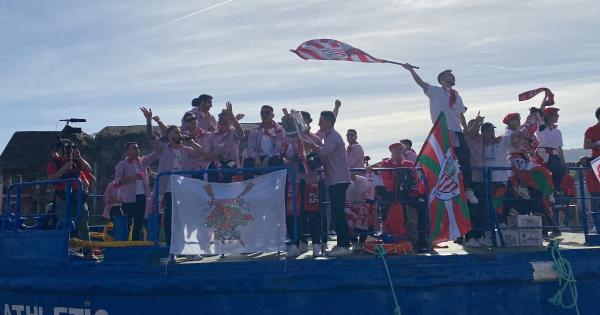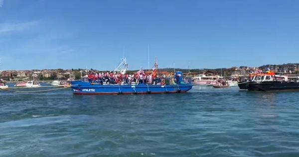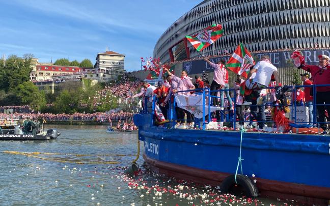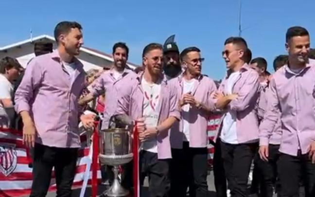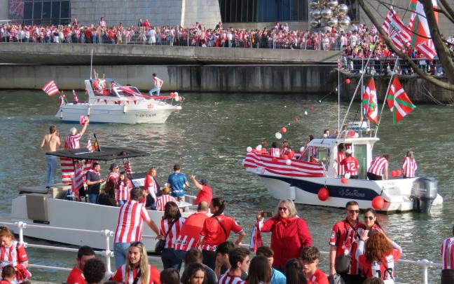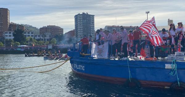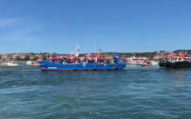 El Athletic Club llega con la copa a Getxo para subir a la Gabarra