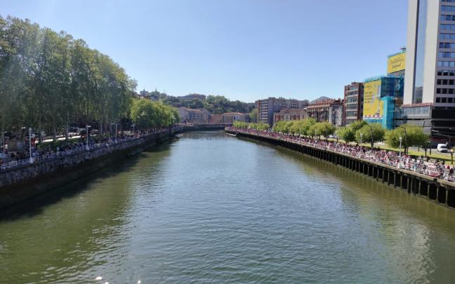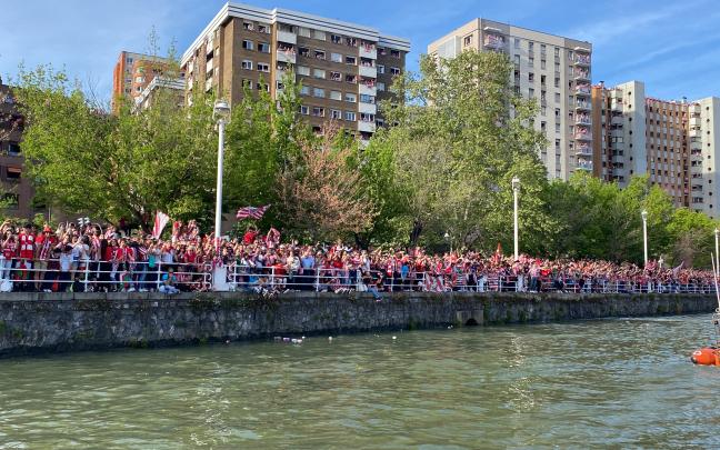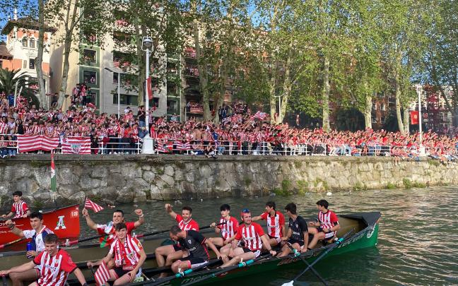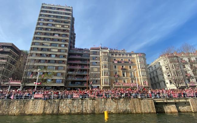 En Bilbao, el puente del Ayuntamiento es uno de los mejores lugares para ver cómo se bajan de la gabarra los jugadores y el cuerpo técnico para ser recibidos en el Consistorio bilbaíno. También el paseo del Arenal es uno de los puntos clave que ha comenzado a teñirse de rojiblanco a primeras horas del día, al igual que Uribitarte.