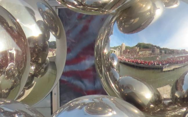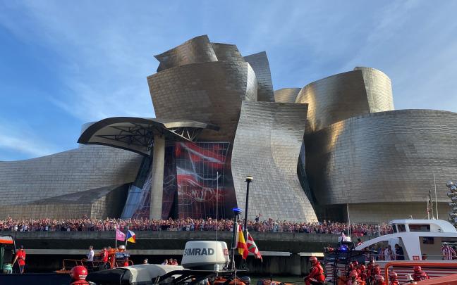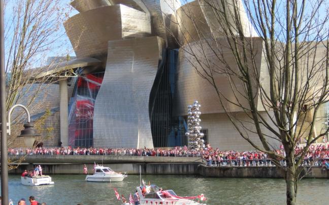 Desde las alturas del Palacio Euskalduna, ONDA VASCA ha podido ver el paso de la Gabarra junto a todos los aficionados rojiblancos que rodeaban la ría.