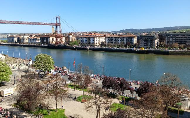 Con el paso de las horas, ambos márgenes que une el Puente Bizkaia, Portugalete y Las Arenas, han comenzado a llenarse de aficionados rojiblancos para coger el mejor sitio para ver el paso de la Gabarra.