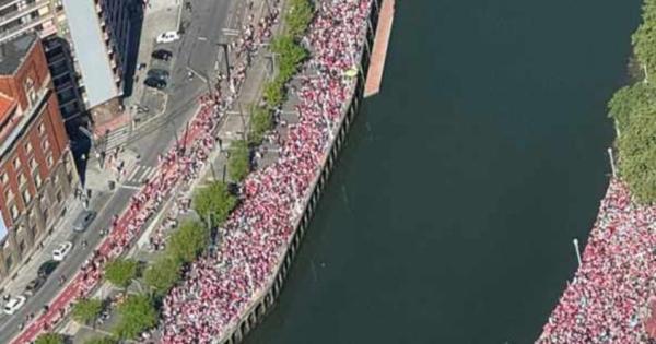 Miles de personas ya rodean la ría cerca del ayuntamiento
