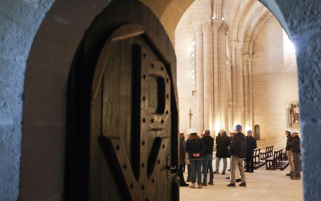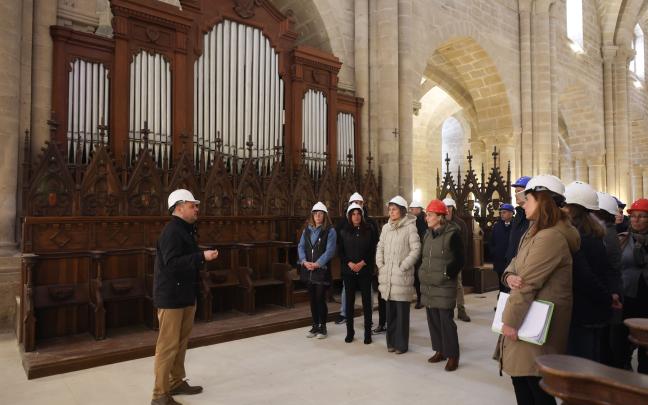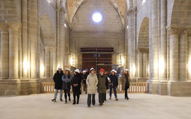 La consejera de Cultura, Deporte y Turismo del Gobierno de Navarra, Rebeca Esnaola, ha visitado recientemente las obras de restauración del interior de la iglesia abacial del monasterio de Santa María de La Oliva, cuyas obras se prevé finalicen a lo largo de este mes, y que han supuesto una inversión de 2,5 millones de euros. En su visita la consejera Esnaola ha estado acompañada, entre otras personas, del abad del monasterio, Javier Urós, de la delegada del Gobierno en Navarra, Alicia Echeverría, y de la alcaldesa de Carcastillo, Olaia Fraile.