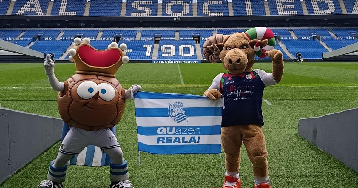 Si alguien pensaba que todo iba a ser táctica, nervios y maletas rumbo al sur… se equivocaba. Este martes, el protagonismo en Anoeta no fue solo para jugadores y aficionados de la Real Sociedad. Hubo otra concentración, bastante más peluda y con mucho más baile: la de las mascotas. Y ahí apareció Gar. Con energía, desparpajo y ese punto travieso que no falla: la mascota del club Bizi Hadi de Debagoiena se plantó en el estadio para, literalmente, darle calor a Txurdin antes de su viaje a Sevilla.