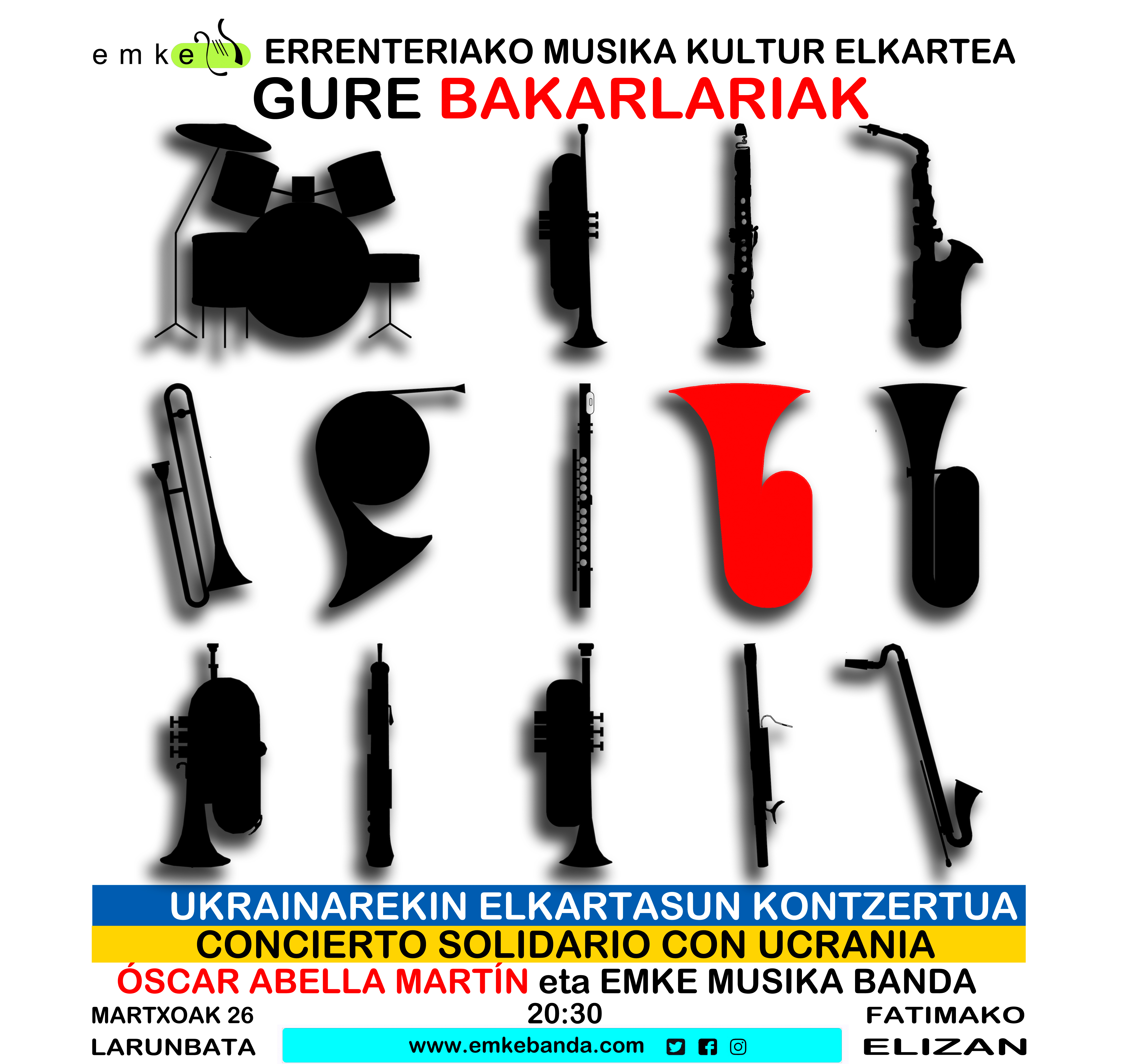 Martxoaren 26an, Fatimako Elizan (Kaputxino auzoan) izango da lehengo kontzertua zeinetan Ukrainarekiko solidaritatea azaleratuko den. Mitxelenak gonbidatu gaitu ekitaldira non Oscar Abella musikaria eta Errenteriako Musika Banda entzuteko aukera izango dugun.