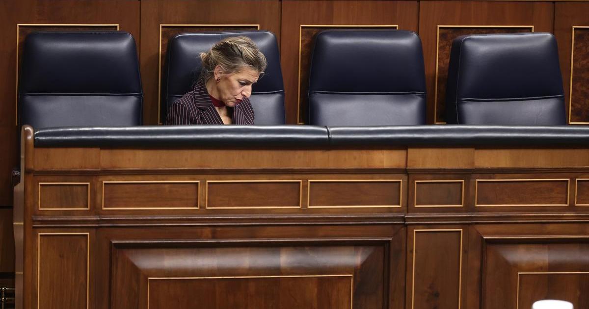 La vicepresidenta segunda y ministra de Trabajo y Economía Social, Yolanda Díaz, interviene durante una sesión de control al Gobierno, en el Congreso de los Diputados.