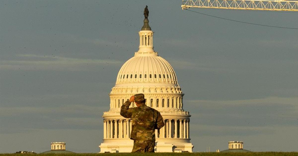 Un militar de la Guardia Nacional de Estados Unidos observa el Capitolio tras su despliegue en Washington D.C.
