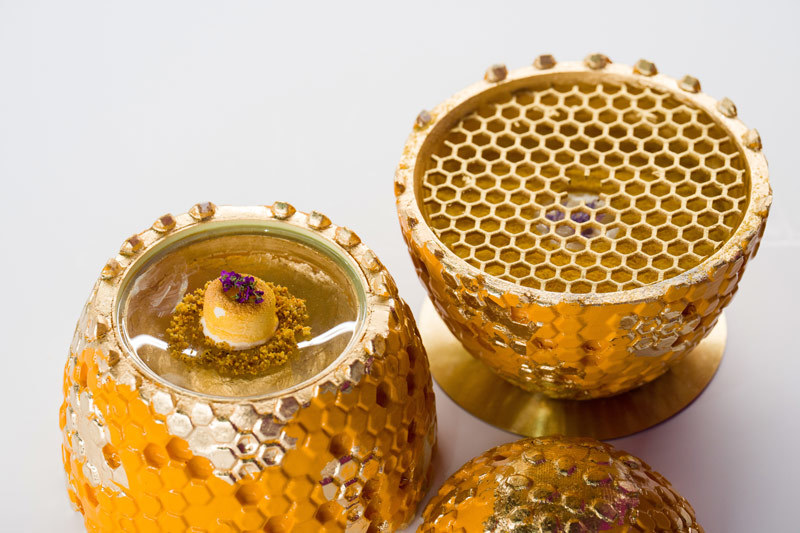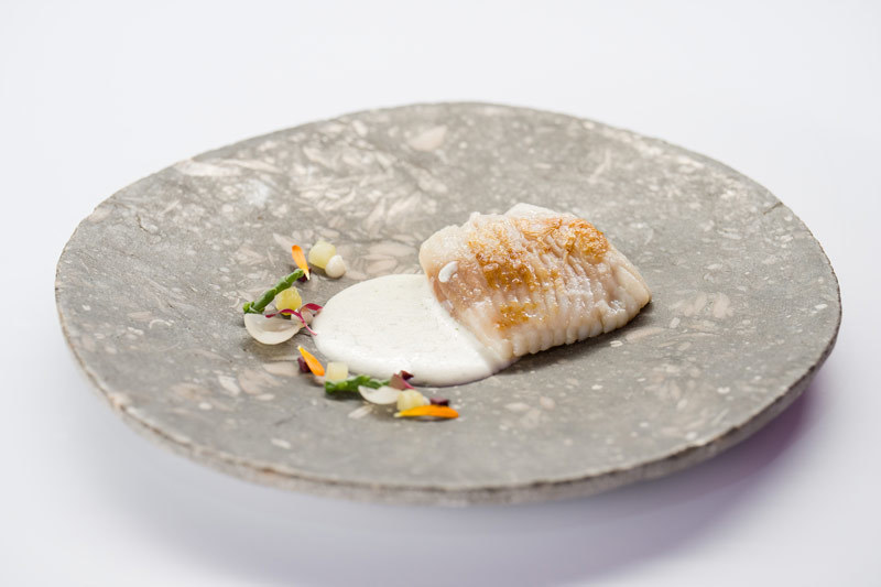 Raya meuniere y matices mediterráneos. Foto. concursococinerodelano Cierra con un sorprendente postre de miel, kéfir y naranja, que a su espectacular presentación una creatividad técnica que con tres sencillo ingredientes permite descubrir al comensal matices inesperados en cada bocado.