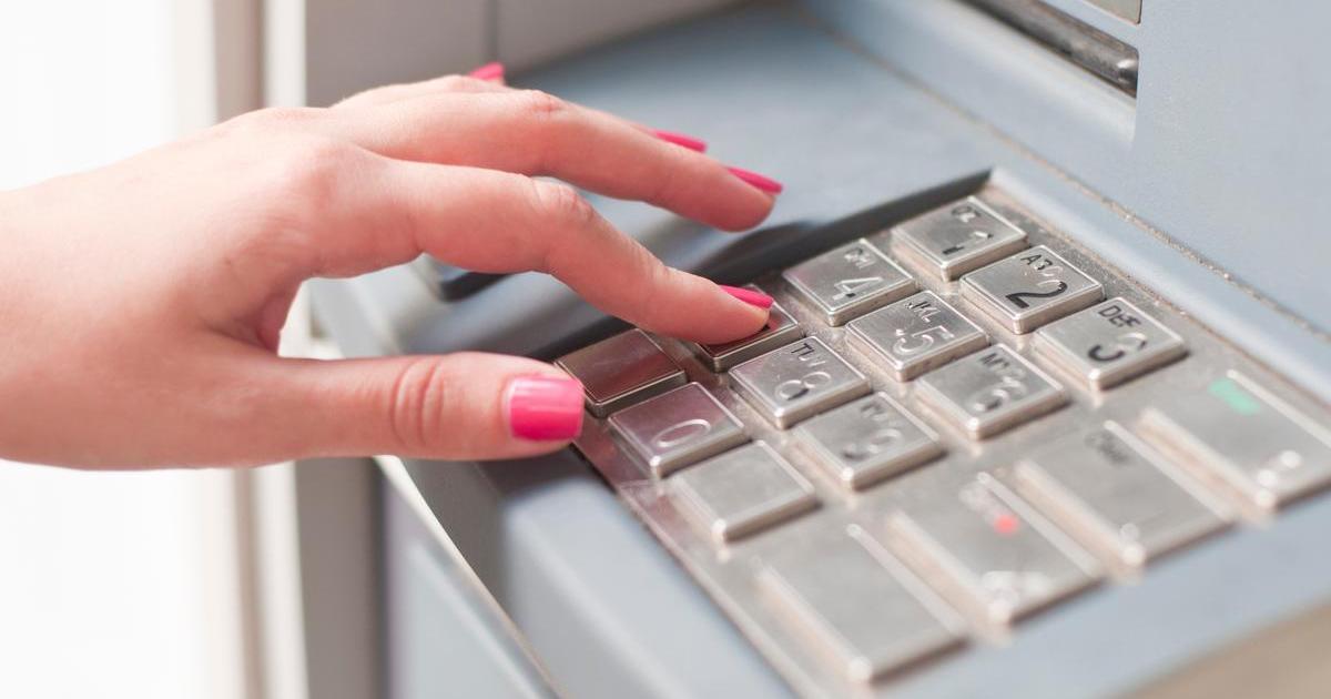 Una empleada de banca teclea el número de una tarjeta en un portátil.