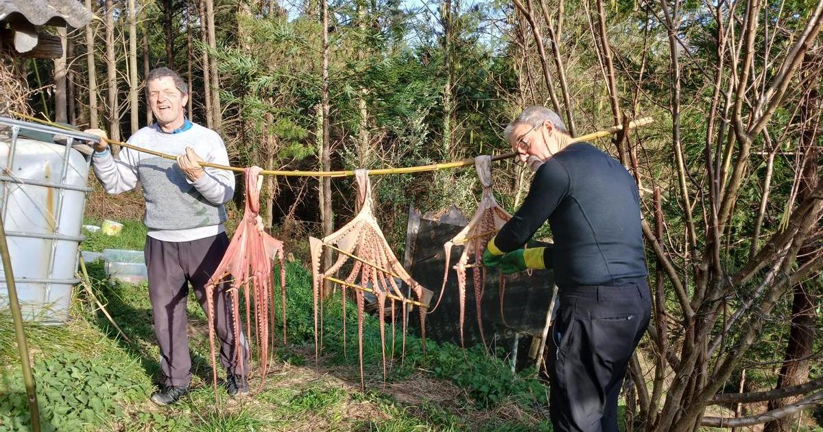Aun así, sigue practicando el secado a pequeña escala, lo justo para garantizar la elaboración de la sopa en fechas señaladas como San Telmo o el Olagarro Eguna. Cada verano cuelga algunos ejemplares, dejando que el sol y el viento hagan su trabajo, consciente de que más allá de la técnica, lo que conserva es un fragmento de identidad local que amenaza con desaparecer.