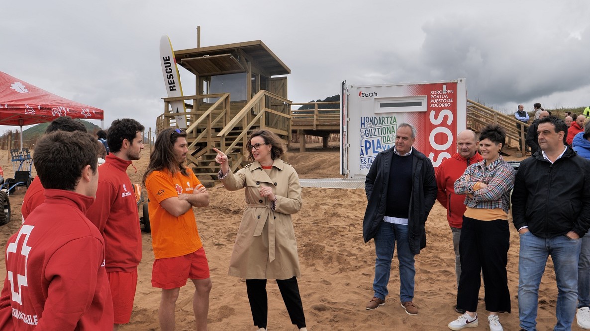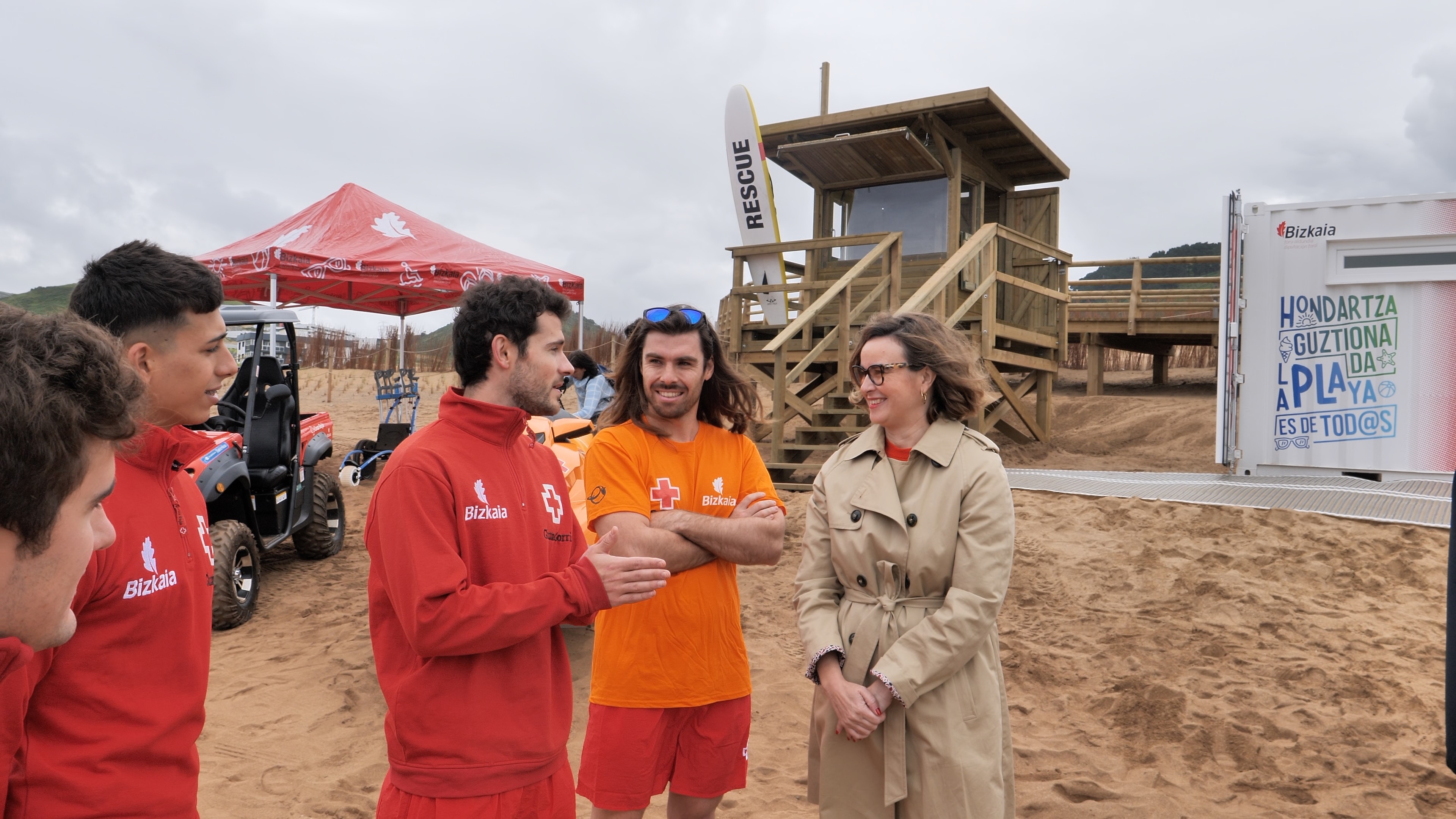 Estas y otras novedades se han presentado hoy en la playa de La Arena, en la que la Diputada General, Elixabete Etxanobe, ha subrayado que el objetivo de la Diputación Foral de Bizkaia es "que las playas sean espacios limpios, seguros y con buenos servicios. Que todas las personas que acudan a la playa disfruten y vuelvan a casa con la satisfacción de saber que en Bizkaia tenemos unas playas de primera categoría". Y ha añadido que las playas deben ser espacios para la inclusión: "Que nadie deje de disfrutar de un día de playa por tener algún tipo de discapacidad. Por eso, este año se consolida el servicio de baño asistido en ocho playas. Y lo mejoramos, hacemos más simple el sistema de reservas, para que las personas que lo demandan puedan hacer uso de este servicio con mayor facilidad".