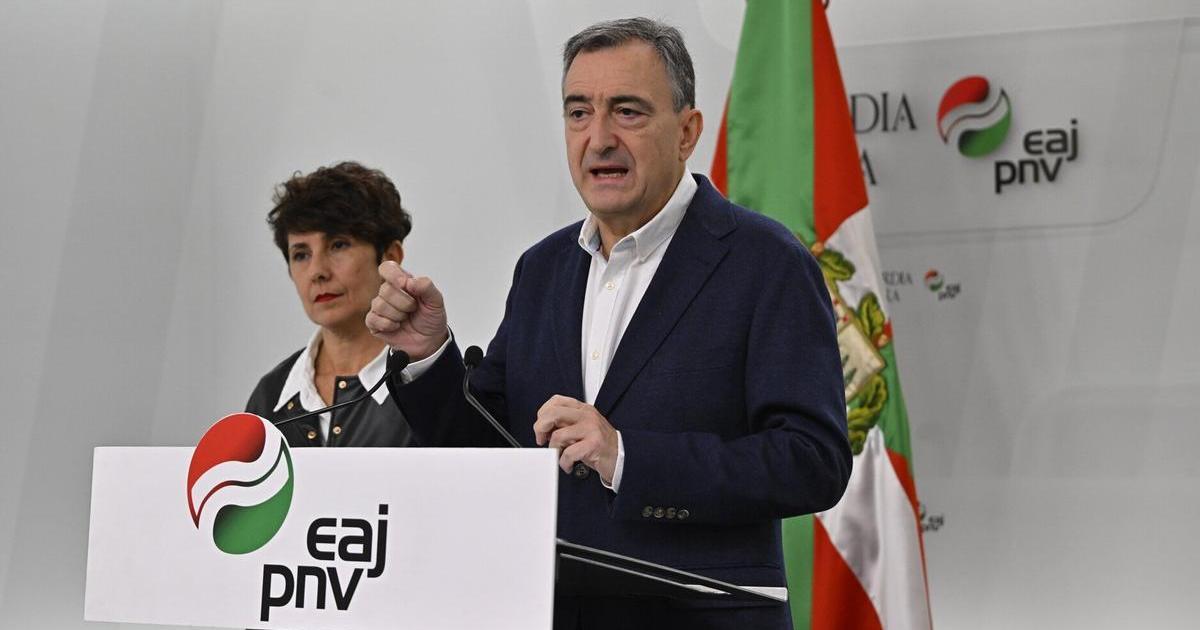 El PNV aupó a Pedro Sánchez hasta la presidencia del Gobierno español a cambio de un pacto de investidura que comprometía al PSOE a transferir todas las competencias pendientes que recoge el Estatuto de Gernika. Debía hacerlo en un plazo "improrrogable" de dos años, pero el reloj avanza, el 31 de diciembre se acerca, y nada parece indicar que el plazo se vaya a cumplir y que vaya a producirse un acuerdo inminente sobre la gestión del régimen económico de la Seguridad Social, los puertos o los aeropuertos. El Gobierno vasco, que es quien negocia a nivel técnico el detalle de las competencias con la consejera Maria Ubarretxena, asegura que el Estado no le ha pedido que el plazo se prorrogue. Pero, ¿se lo ha pedido el Gobierno español al PNV? ¿Y aceptaría en ese caso una prórroga el partido de Aitor Esteban? Preguntado sobre esta cuestión en la rueda de prensa convocada en Sabin Etxea con motivo del 50 aniversario de la muerte de Franco, el presidente del EBB planteó una vía para amarrar y garantizar ese compromiso. Esteban reveló que esta misma semana ha trasladado en privado al presidente del Gobierno español que “ese plazo está ahí, para el PNV es un asunto absolutamente importante” y, en concreto, quiere que se produzca este mismo año un acuerdo político sobre todas las materias pendientes, que luego se pueda bajar al detalle en los próximos meses con sus valoraciones económicas y de personal. De lo contrario, se lo tomará como un “incumplimiento” y como algo “grave”.