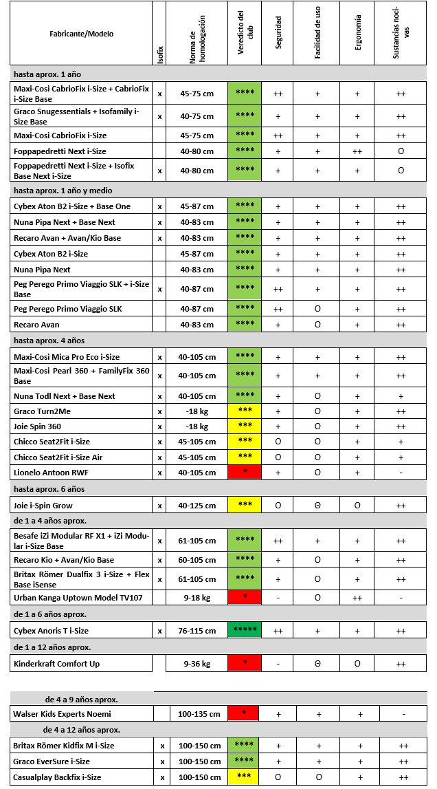 El test, realizado por un consorcio de automóviles club y consumidores europeos, en el que participa el RACE, mide cuatro parámetros fundamentales en sillas que están homologadas para su venta: seguridad, facilidad de uso, ergonomía y sustancias perjudiciales.