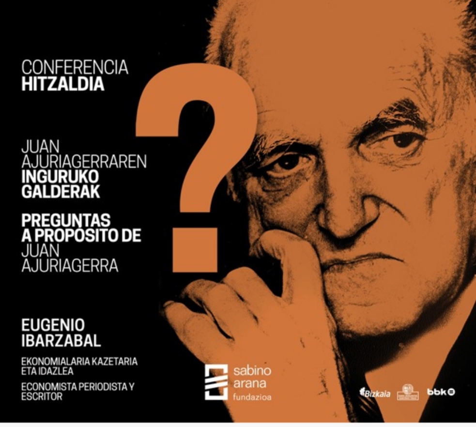 Este jueves 21 de septiembre, en la sede de Sabino Arana Fundazioa con motivo del 120 aniversario del nacimiento de Juan Ajuriagerra, el escritor, economista y periodista Eugenio Ibarzabal impartirá una conferencia a las 19:00 horas en la que pretende suscitar una reflexión "Preguntas a propósito de Ajuriagerra".