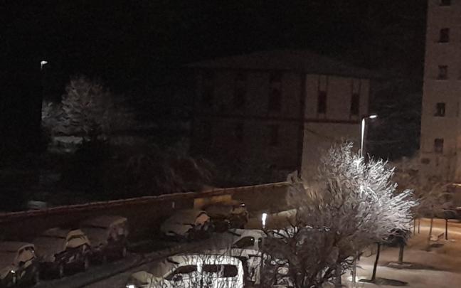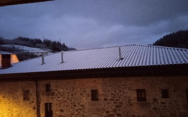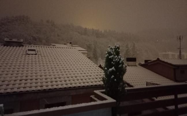 La nieve ha llegado a Euskal Herria. Muchos puntos del interior han amanecido ya bajo un fino manto blanco. El departamento de Seguridad ha activado la alerta naranja por nieve para hoy y mantiene los avisos amarillos en la costa por lluvias persistentes y por viento.