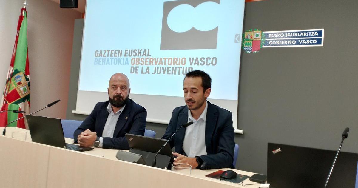El viceconsejero de Juventud y Reto Demográfico del Gobierno vasco, Xabier Legarreta, y el director de Juventud y Emancipación, Adrián López, han presentado este lunes en Bilbao el informe 'Claves de la Emancipación en Euskadi', del Observatorio Vasco de la Juventud.