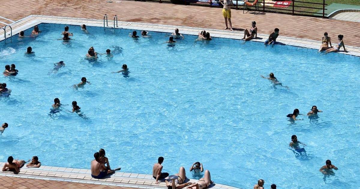 Decenas de personas se refrescan en una piscina ante la ola de calor.