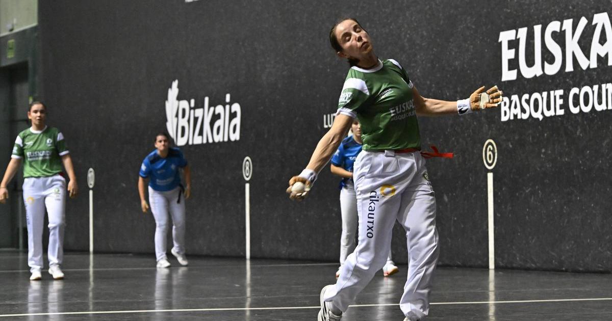 Gaminde ha vuelto a saltar a la cancha para disputar el choque de parejas, escoltando a Arrizabalaga frente a la leitzarra Goiuri Zabaleta y a la riojana Andrea Capellán. Y en los primeros compases del joko inicial ha parecido acusar el esfuerzo acumulado al evidenciar problemas en los gemelos. Las representantes españolas han aprovechado la coyuntura para irse hasta un 3-6, pero la de Laukiz se ha recuperado. Con la ayuda de Arrizabalaga, que se ha echado el peso del partido encima, Euskadi ha remontado para llevarse ese primer set por 10-8 y barrer al dúo hispano en el segundo con un incontestable 10-1.