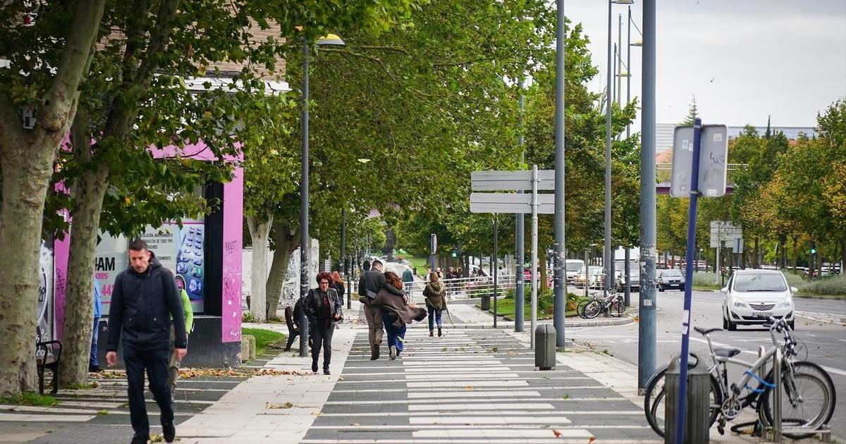 Varias personas caminan por una calle de la capital alavesa en pleno paso de la borrasca Kirk. / EP