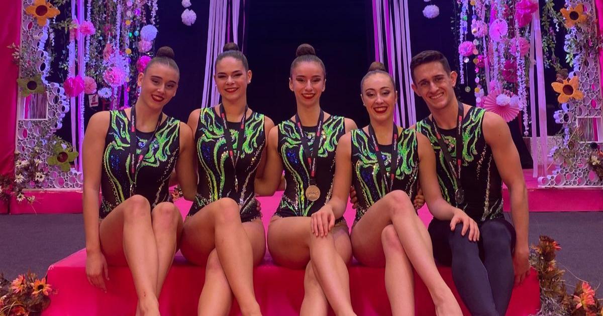 Naroa Ribeiro, June Orza, Julene Eraña, Araia Salazar y Eneko Lambea, conjunto de Sakoneta / Foto: Federación Vasca de Gimansia