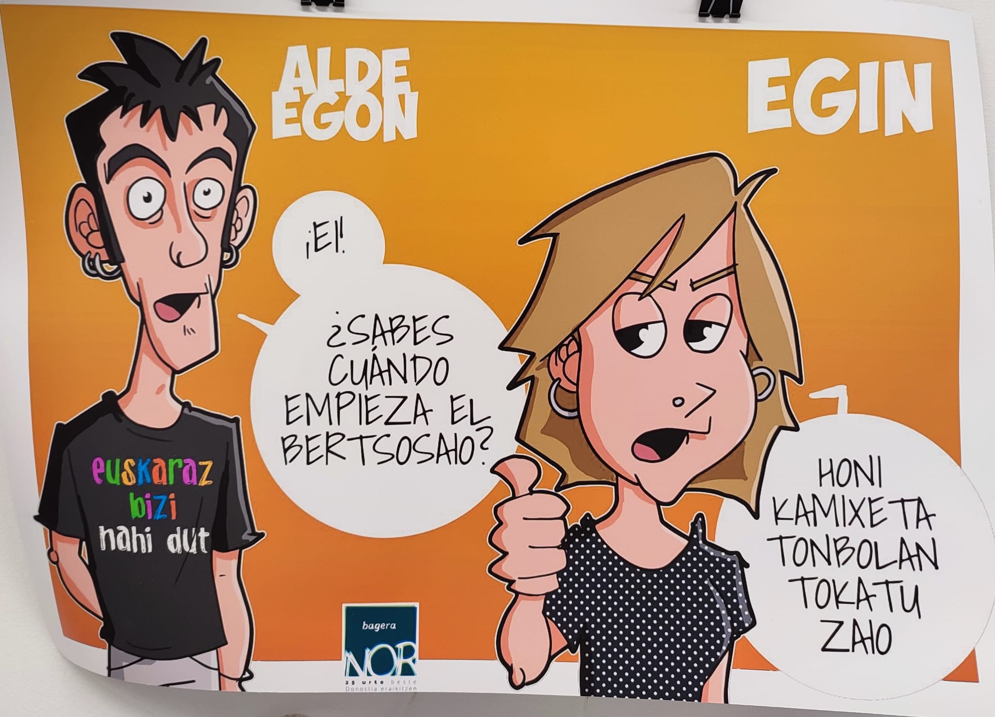 Donostiako EHUko Carlos Santa Maria Zentroko Txillardegi aretoan kokatuta dago 'Alde edo alde' erakusketa. Bagera Donostiako Euskaltzaleen Elkarteak antolatu du euskararen normalizazioa sustatzeko helburuarekin.