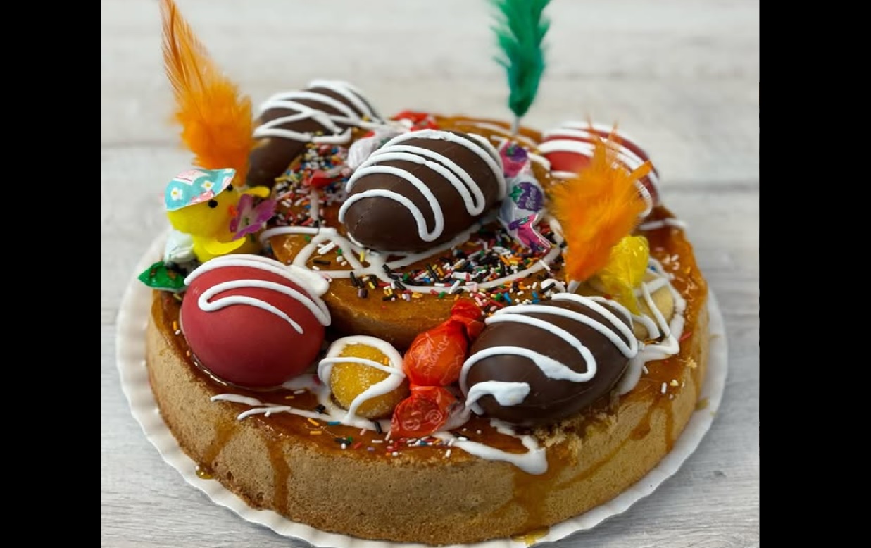 Eva Urgain, responsable de la pastelería Hawaii, con establecimientos en Irun y Hondarribia, ha compartido en Gipuzkoako Kale Nagusia todos los detalles que rodean a la tradicional opila, el dulce decorado con elementos coloridos hecho con almendras y que las madrinas regalan a sus ahijados con motivo del Día de San Marcos que se celebra hoy, 25 de abril.