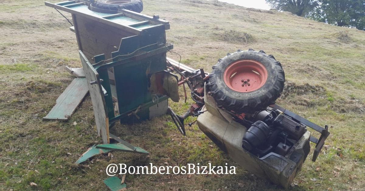 A través de sus redes sociales, los Bomberos Forales de Bizkaia han informado del rescate de un hombre esta mañana tras el vuelco de su tractor en un terreno rural en Berriz.