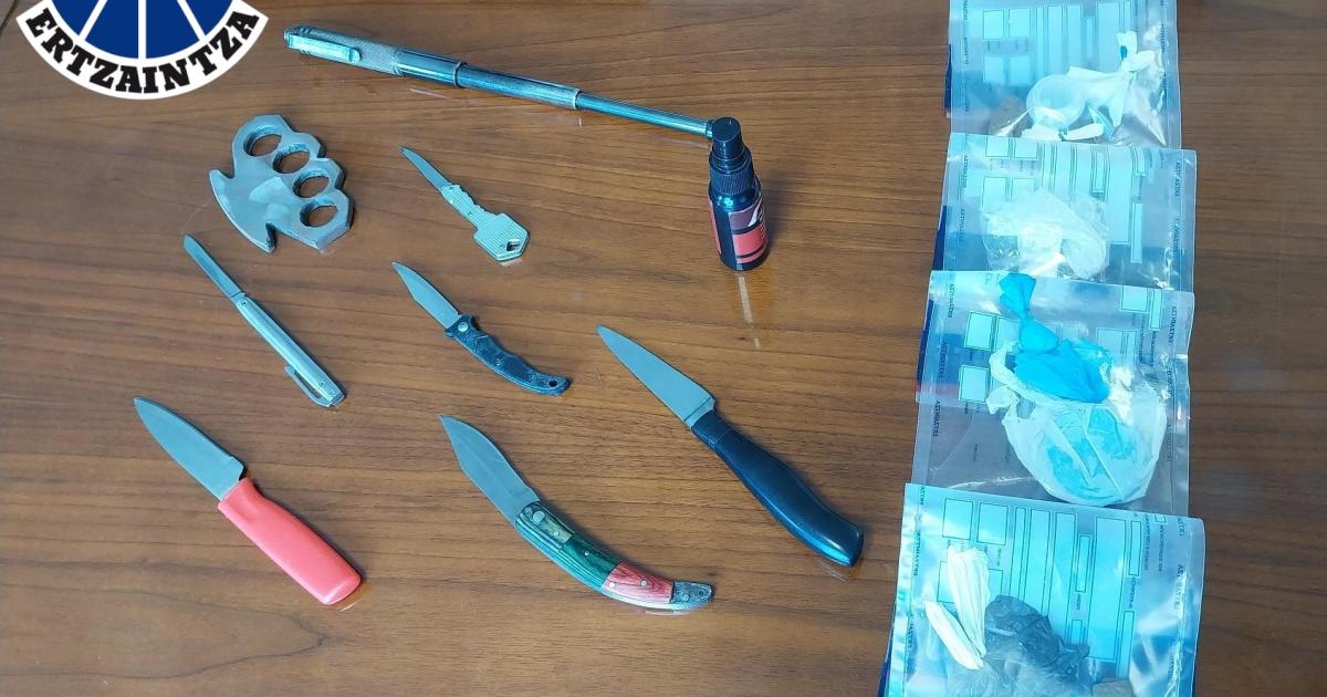 Estas intervenciones son fruto de las tareas preventivas que realiza la Ertzaintza dentro del plan de acción para el control de armas blancas y objetos peligrosos en lugares públicos.