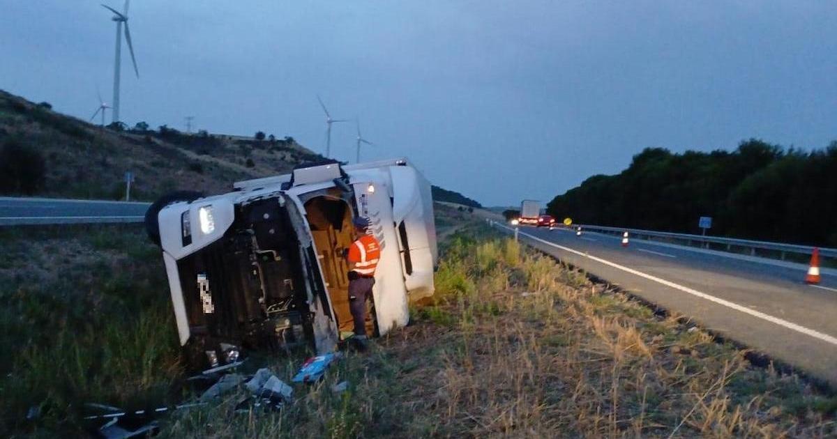 El camión se ha salido de la vía, ha volcado y el conductor ha quedado atrapado