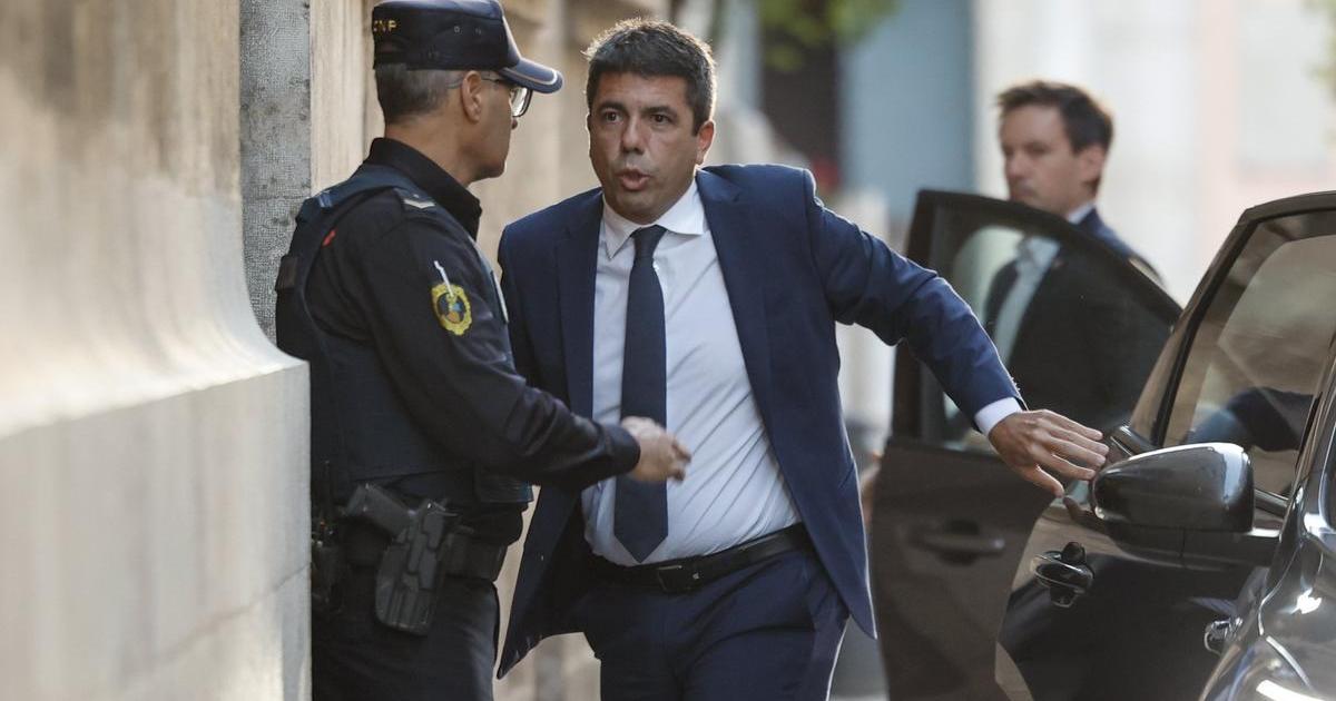 Carlos Mazón, a su llegada ayer al Palau de la Generalitat Valenciana, antes de anunciar su dimisión como president de la Comunidad Valenciana / Biel Aliño