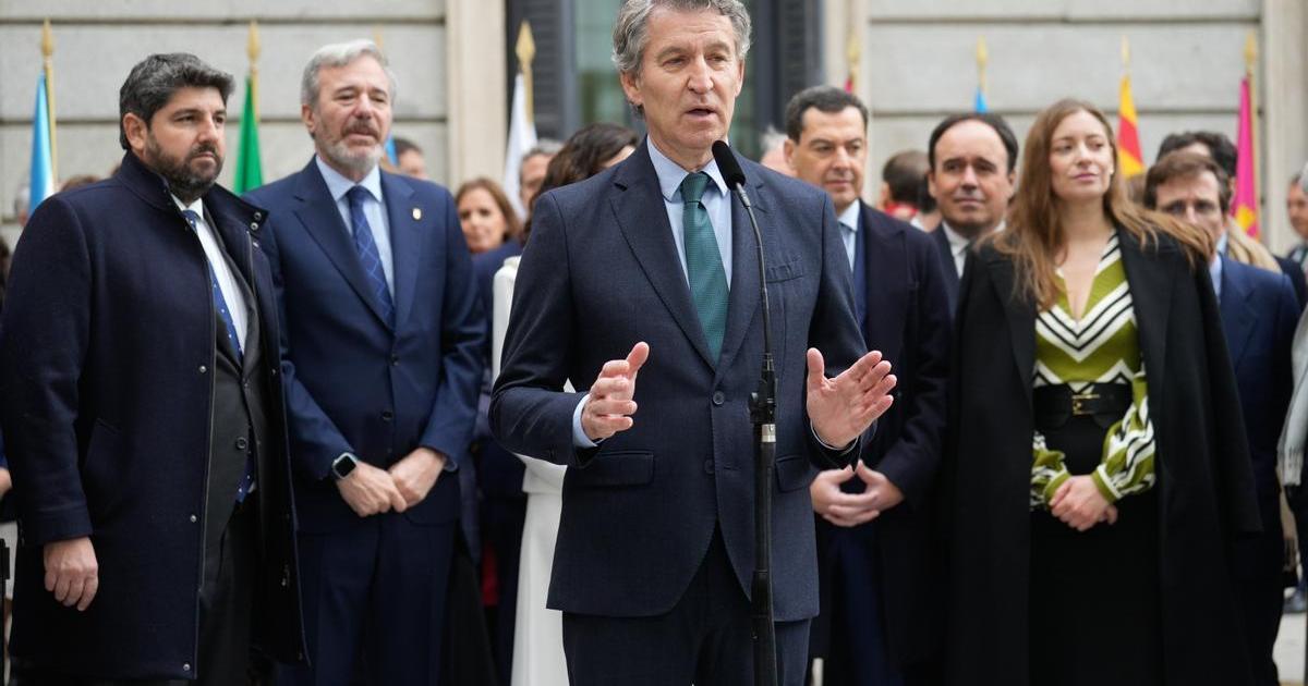 En una conversación informal con la prensa en el Congreso, en el marco de las celebraciones por el Día de la Constitución, Feijóo ha dicho que lo de dejar el acta "es un asunto de Mazón".