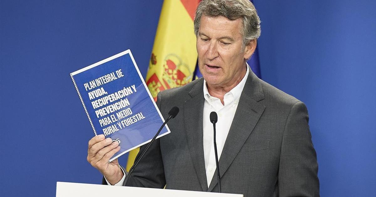 El presidente del Partido Popular, Alberto Núñez Feijóo, ha anunciado este lunes un plan integral con 50 medidas frente a los incendios forestales que, según ha explicado, será remitido de inmediato a las Cortes Generales. Entre ellas, un "registro nacional de pirómanos" y que estén geolocalizados, profesionalizar Protección Civil, más ayudas y sin impuestos, y más apoyo a la ganadería y el mundo rural.