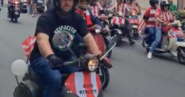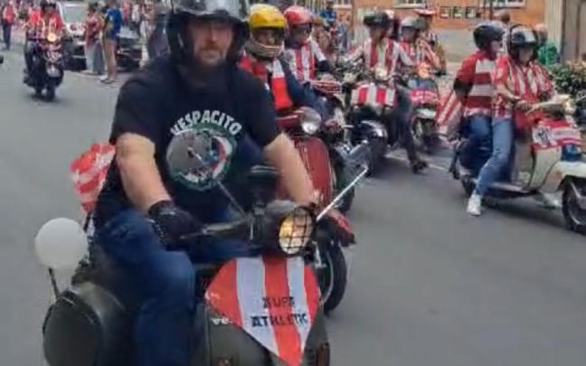 Las clásicas motos Vespa han salido a las calles de Bilbao con el objetivo de animar a los jugadores del Athletic Club por el encuentro ante el Mallorca. En esta quedada de Vespas, concentrada en la calle Doctor Areilza, no ha faltado el ruido de los motores, las bocinas y el rojo y el blanco.