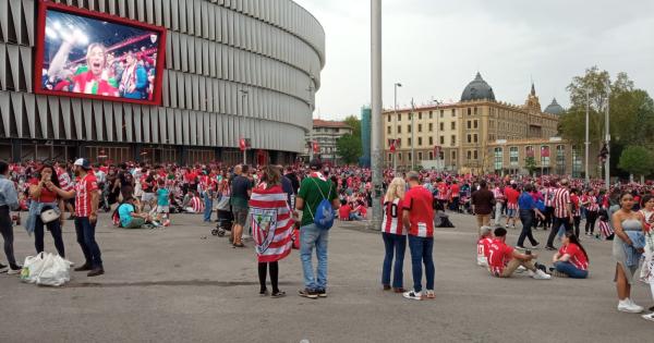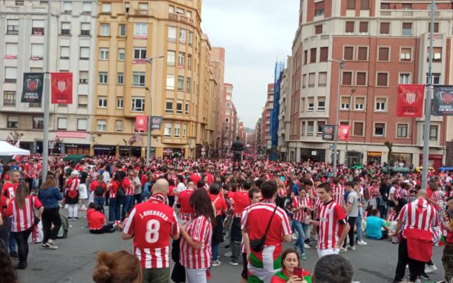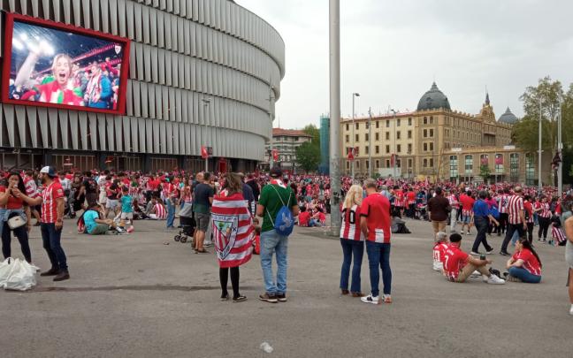 Los miles de athleticzales que van a disfrutar el partido de la final desde las pantallas gigantes instaladas dentro del estadio San Mamés ya se encuentran en los aledaños del mismo.