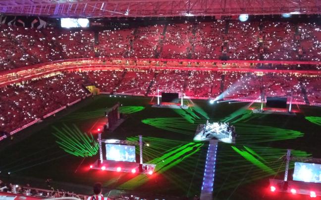 Al igual que en cada encuentro del Athletic Club, pese a que los jugadores no estén 'in situ' en San Mamés, el estadio brinda a sus asistentes su tradicional juego de luces y ambiente musical previo al encuentro.