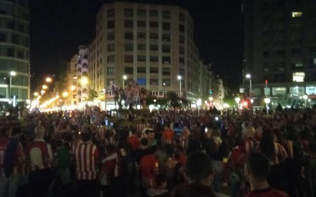 El triunfo del Athletic Club se ha hecho notar en Bilbao. Escasos momentos después del triunfo del conjunto rojiblanco en la Copa ante el Mallorca en la tanda de penaltis, miles de aficionados han acudido a diferentes puntos de la ciudad a celebrar la victoria. Ejemplo de ello es Plaza Moyua, que actualmente se encuentra abarrotada de aficionados.