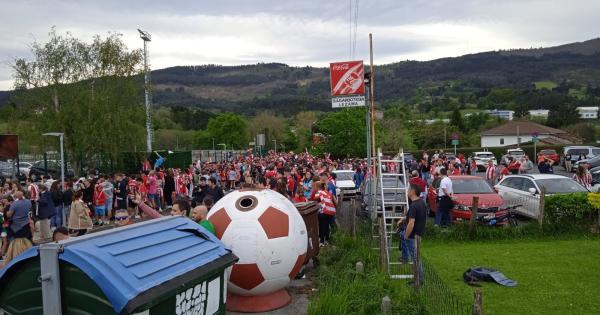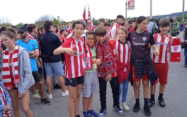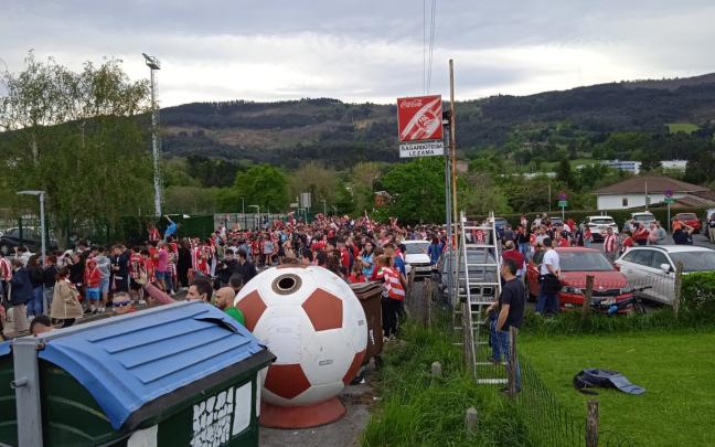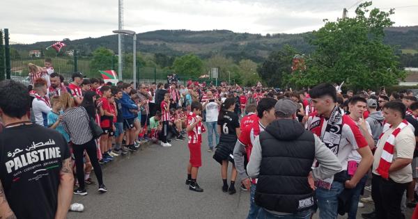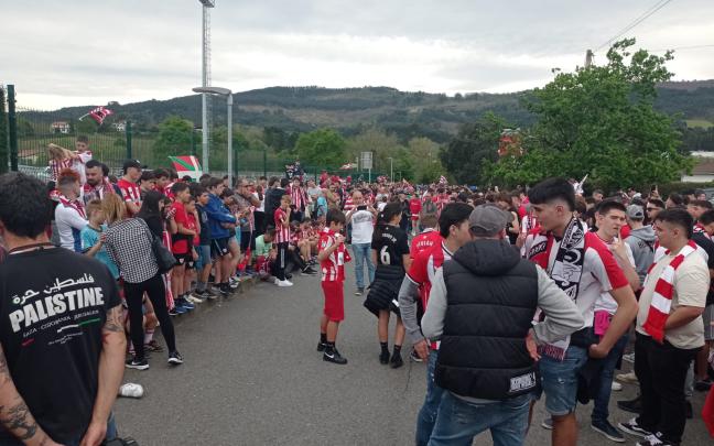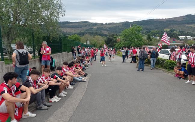 Familias enteras se han acercado a las instalaciones para arropar a su equipo y mandarles fuerza y energía. Sin embargo, el autobús que llevaba a los jugadores ha salido hacia Larrabetxu por la salida subterránea, no hacia Zamudio, por la entrada principal, donde estaba la mayoría de la afición esperándoles, por lo que la gran mayoría de aficionados se han quedado sin verles. Los athlectizales han acudido a Lezama para despedir al equipo rojiblanco en su salida al aeropuerto de Loiu, donde han cogido el vuelo a Sevilla a las 15:30 horas.