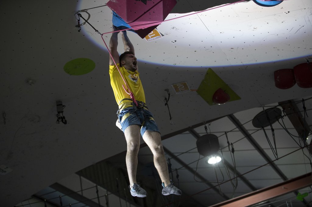 Más intriga tuvo la final masculina. De los siete escaladores, cuatro lograron el top, pero el orden de salida decide en estos casos. El mejor semifinalista es el último en salir a competir por lo que parte con la ventaja ya que si supera la vía será el ganador. Y así sucesivamente.
