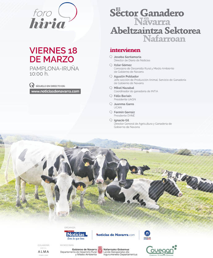 DIARIO DE NOTICIAS organiza este viernes 18 de marzo una nueva sesión del Foro Hiria, que en esta ocasión tendrá como eje de debate al sector ganadero en Navarra
