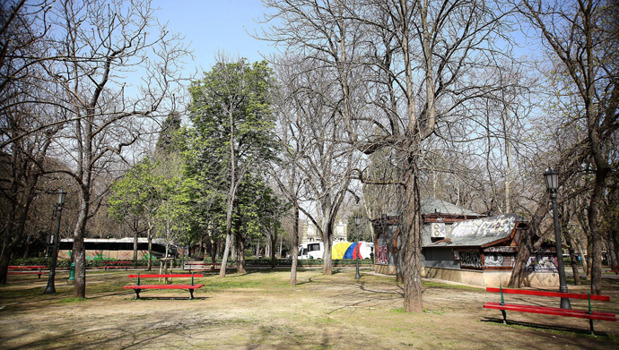 El popular arbolico de San José, el castaño de Indias, que crece junto al kiosco del Bosquecillo de Pamplona, no defrauda y luce ya repleto de hojas, destacando entre el conjunto del arbolado de su misma especie, todavía desnudo para estas fechas.