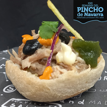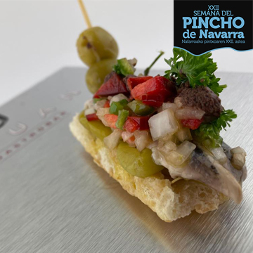En Pamplona, Lajuana Gastrobar Mendebaldea con 'Que + Gilda da'; Caravinagre Bar Gourmet Café (Hotel Maisonnave) con '¡Ya falta menos!'; Iruñazarra con 'Irati'; Bar Monasterio con 'El cordero de la Puri'; Gure etxea con 'shhh!!! potroa'; Café Iruña con 'Entre pan y pan de gamba y chipirón, changurro y mejillón'; Bar Casa Otano con 'Le llamaban Trinidad (atún rojo Balfegó, salmón y láminas de alcachofa sobre tosta crujiente)'; Bar Ulzama con 'Viva San Faimin'; Baserriberri con 'Four-tunna stem amb tu boliku'; Bearán bar & rooms con 'Txiscake'; Restaurante la vieja Iruña con 'Bocalacha'; Cafetería Elizalde (Casa Salinas) con 'Mantecadas salinas, 150 años de historia (pincho dulce)'; Bar Inglés (H.Tres Reyes) con 'Mordorisco de ciervo'; Geltoki con 'Pataborraja'; Chester & Pisco con 'Huevo de dragón'; Restaurante El Merca'o con 'Tubertxerri'; La barra del goloso con 'Txitxarrón del norte'; Rex casa de comidas con 'Empapada'; Akari gastroteka con 'Keep kalm