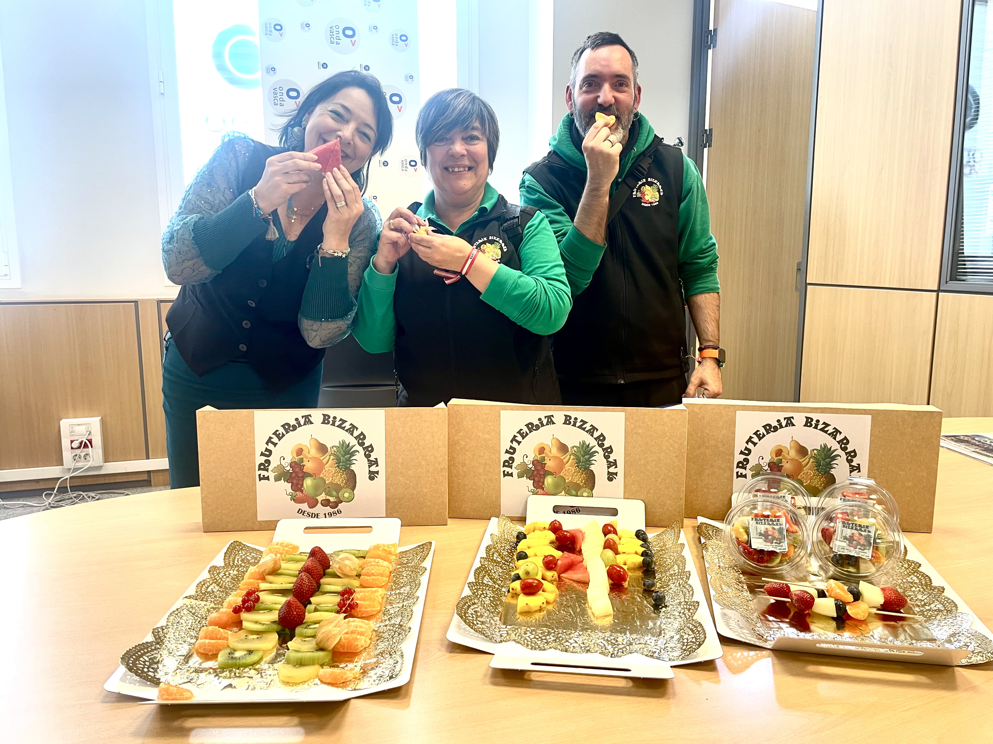 Esta semana hemos conocido al equipo de frutas Bizarrak (Ana, Félix y Gaizka) quienes nos han preparado una muestra de lo que puede ser un picoteo de fruta fresca, rica y cortada para deleite de toda la redacción. Además sus talleres divulgativos con anécdotas, curiosidades y productos más desconocidos son una actividad ideal para colegios y entidades. En Onda Vasca queremos apoyar su iniciativa…