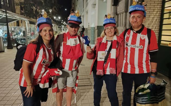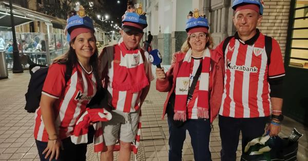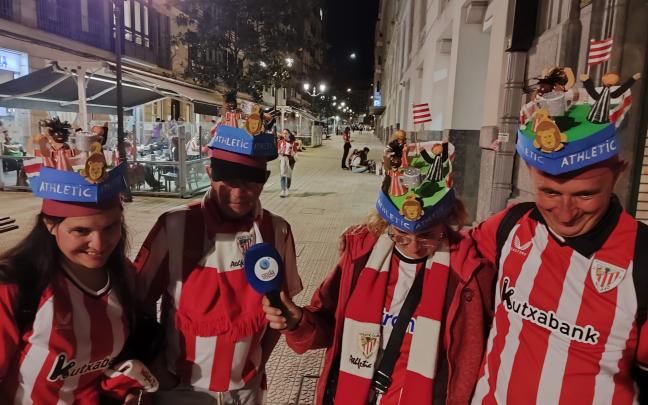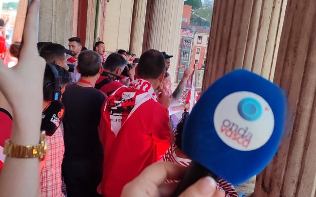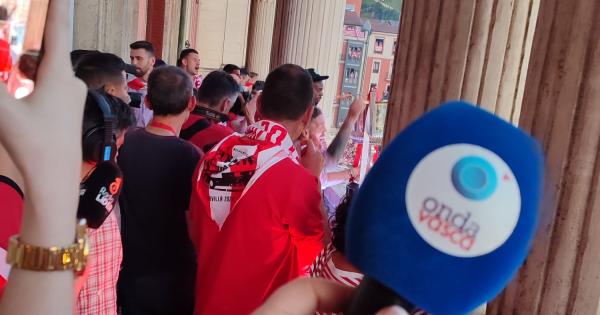 Una vez allí, junto al alcalde de Bilbao, Juan Mari Aburto, los jugadores y Ernesto Valverde, los aficionados situados en los aledaños del edificio han disfrutado de varios discursos por parte de los protagonistas y el alzamiento del trofeo de Copa.