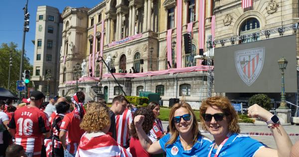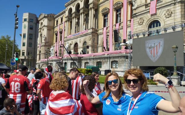 Con el recorrido de la Gabarra finalizado, y los jugadores fuera de ella, la celebración del triunfo de Copa del Athletic Club ha continuado en el ayuntamiento, lugar en el que miles de aficionados han esperado desde primera hora de la mañana.