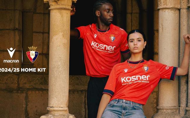 La nueva primera equipación 2024/25 de Osasuna es del clásico color rojo, con detalles en azul oscuro en un cuello redondo y en los bordes de las mangas. El detalle distintivo de la camiseta es la impresión en relieve de veinte iconos que representan la cultura de Navarra, los cuales recorren toda la prenda a través de la técnica de embossing. Los símbolos que están representados en la camiseta son: la alcachofa, la alpargata, el toro de San Fermín, la bota de vino, el eguzkilore, el Hartza, la laya, el Momotxorro, el kaiku, el sombrero de los joaldunak, el Castildetierra de las Bardenas Reales, la oveja de Navarra, el pañuelico, la pelota mano, la laxoa, el sello de Teobaldo I, la aizkolaritza, el toro de fuego, las hogueras de San Juan y las campanas de Navarra.
