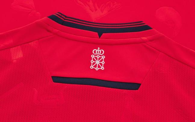 El interior del cuello está personalizado con el escudo del club, la palabra 'Osasuna' sobre un fondo que se hace eco de los símbolos de la camiseta, el logo de Macron y las palabras 'Designed in Bologna', certificando y destacando que cada prenda se concibe, diseña y desarrolla en la sede de la marca italiana. También en el cuello hay una banda personalizada con la inscripción bilingüe, en castellano y euskera, 'Vibra en ti- Zugan Taupaka'. En el pecho, a la derecha y en color blanco, está bordado el 'Macron Hero', el logotipo del patrocinador técnico, mientras que, a la izquierda, en el lado del corazón, se aplica el escudo del club. En la nuca, bordado en blanco, figura el escudo de la Comunidad Foral de Navarra.