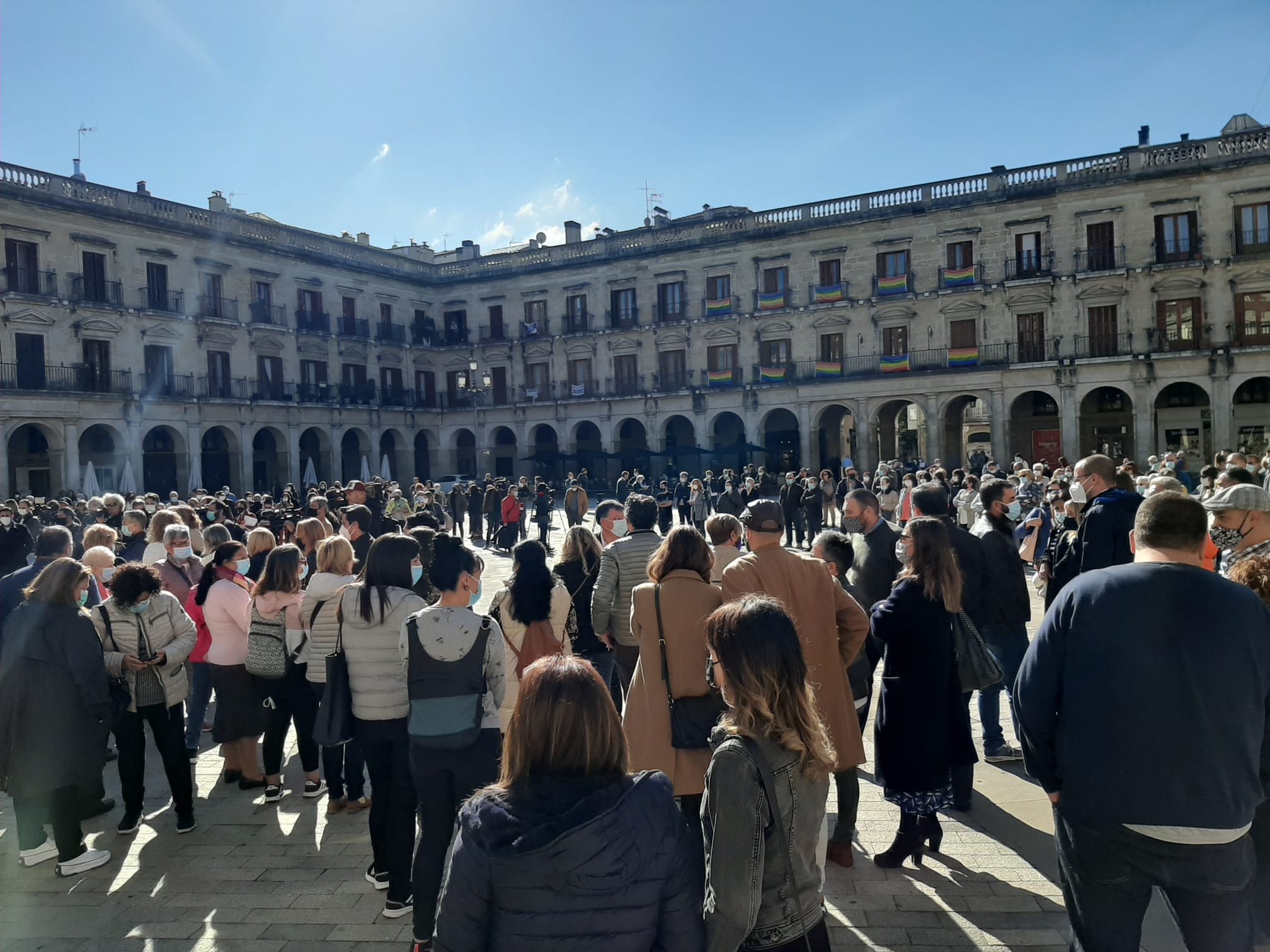 Cientos de personas, la mayoría vecinos del populoso barrio de Sansomendi, se han concentrado este mediodía en Plaza Nueva de Gasteiz para mostrar su más absoluto rechazo y condena por el último asesinato machista en la capital. Amplia representación institucional tras la pancarta "Vitoria-Gasteiz conra las agresiones machistas" encabezada por el alcalde de la ciudad Gorka Urtaran.