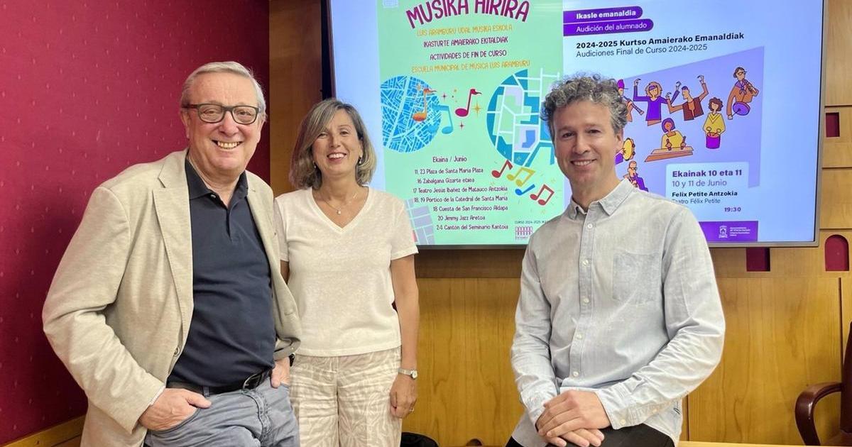 Pedro Elosegi Luis Aramburu Udal Musika Eskolako zuzendariak eta Aitor Urteaga Udal Folklore Akademiako unitateko buruak ere parte hartu dute agerraldian.