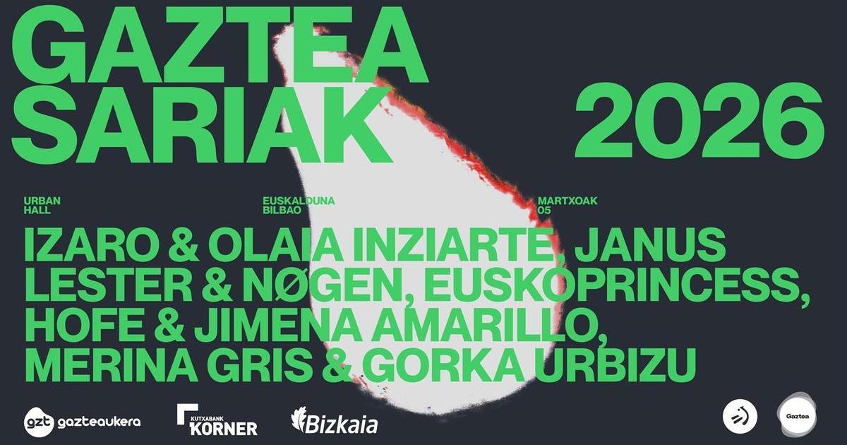 Gaztea Sariak 2026. urteko ekitaldirako doako sarrerak eskuragai daude jada www.gaztea.eus webgunearen bitartez, eta pertsona bakoitzak lau jaso ahal izango ditu gehienez, EITBk prentsa ohar bidez jakinarazi duenez.